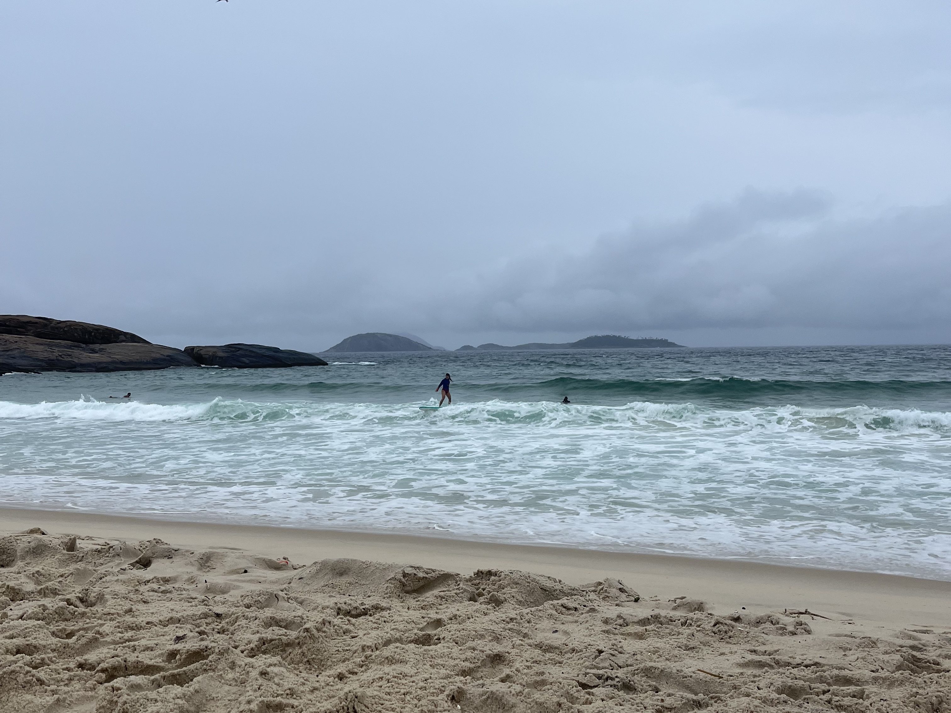 My favorite little magical walkway in the Botanical Gardens 3. Surfing in Arpoador at one of the most famous surfing beaches in Rio. Due to the rainy weather, the waves were really good but not a lot of people were out which gave me plenty of room to wipe out and not mess anyone else up lol. I did a lesson with a Brazilian on the beach that provided the board and gear. He knew what he was doing and gave helpful instructions for what I could understand because his English was not great. This helped me get in the swing of understanding and speaking Portuguese though which was good practice.